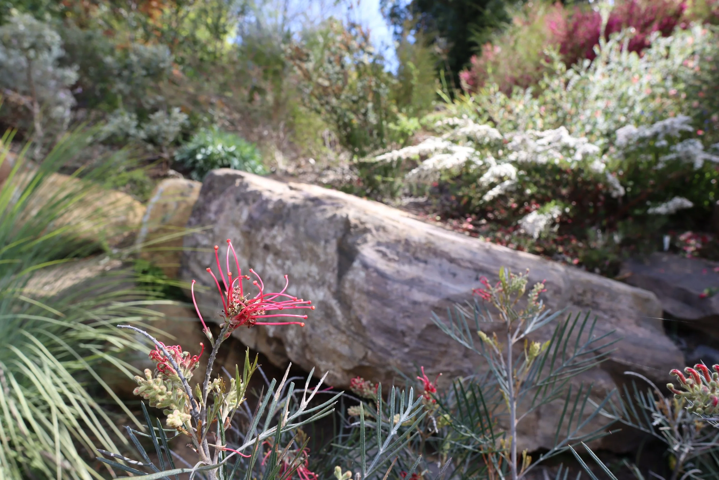 Overall, there are some 15,000 plants from more than 400 native Australian species arranged in a natural setting, creating a biodiverse habitat for the birds, frogs and insects that inhabit the area. It’s an outstanding garden taking full advantage of its location – a rare north-facing hillside in the Dandenong Ranges – enabling many plants to thrive that wouldn’t usually do so at this latitude or elevation.